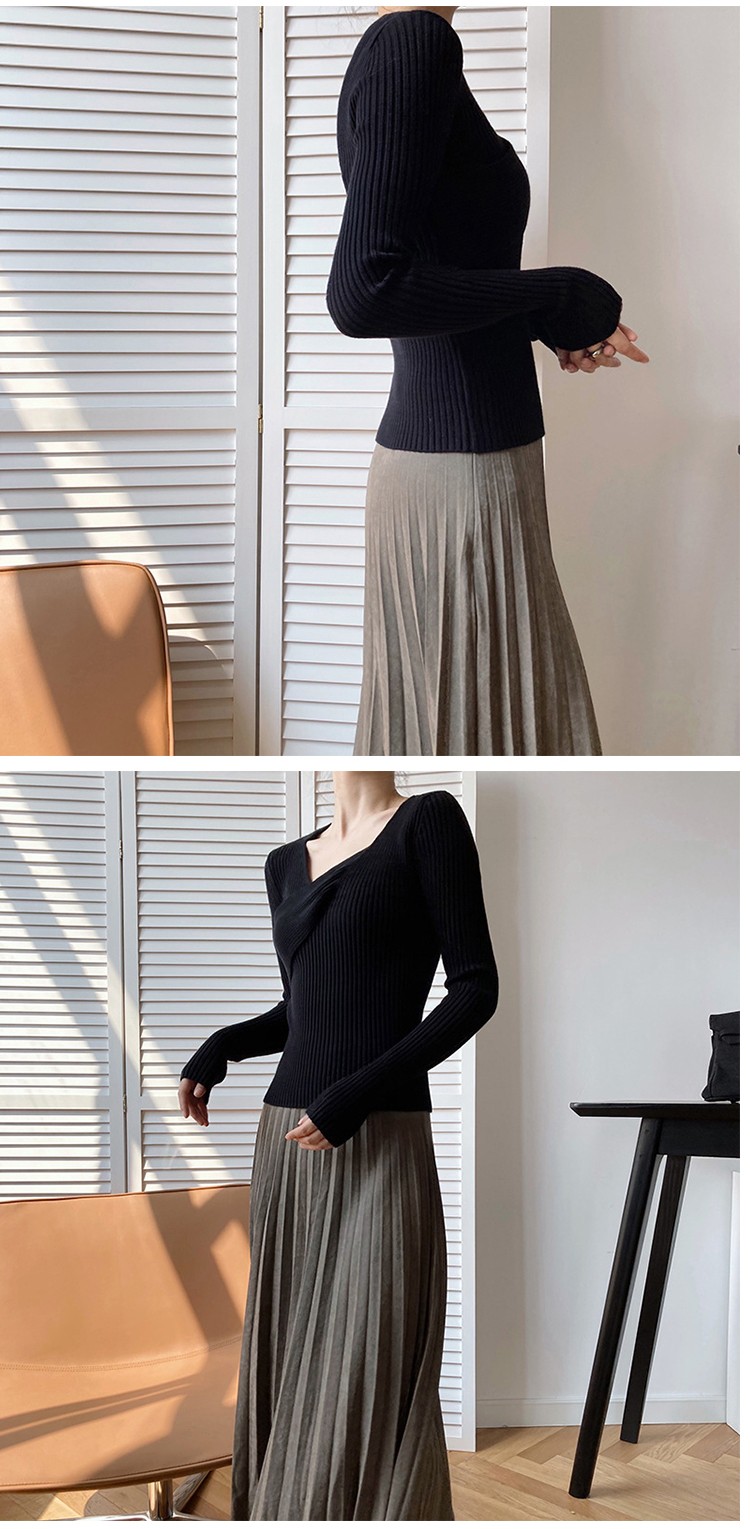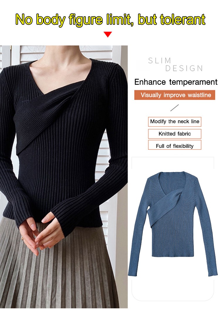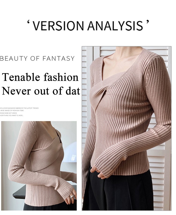 The irregular cross design of the V-neck is good-looking and versatile, revealing the sexy and special clavicle. The knitted fabric feels soft and has good air permeability. The overall slim fit fits the body. The pit stripe weaves super hides the meat and makes it thin