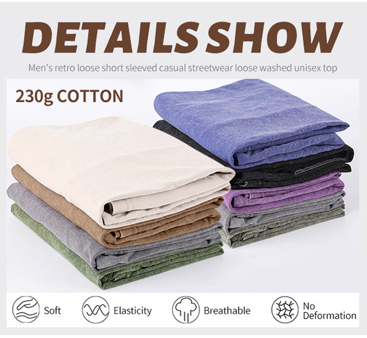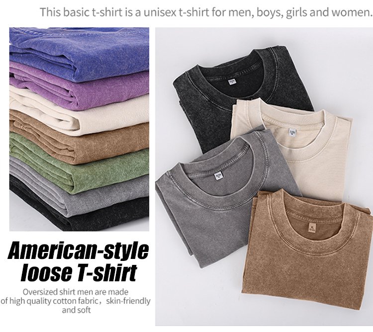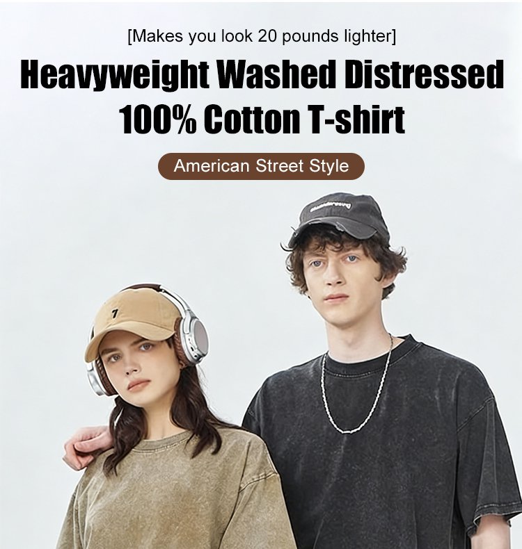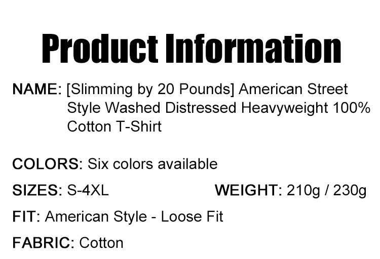 Slimming by 20 pounds American street-style washed vintage heavyweight pure cotton T-shirt